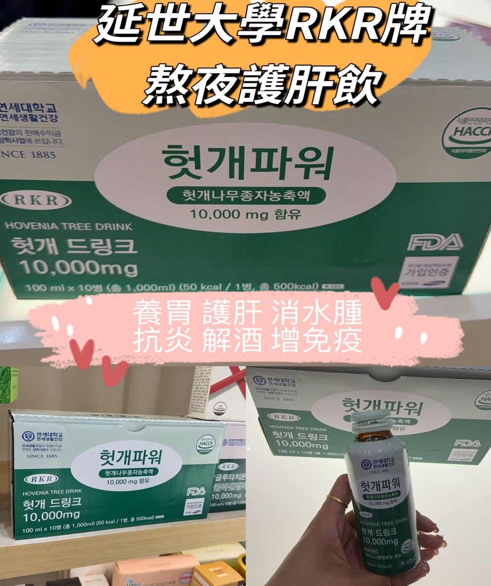 🇰🇷韓國RKR牌枳椇子護肝養胃飲10000mg(100ml*10支)-綠色包裝 約8月底到港