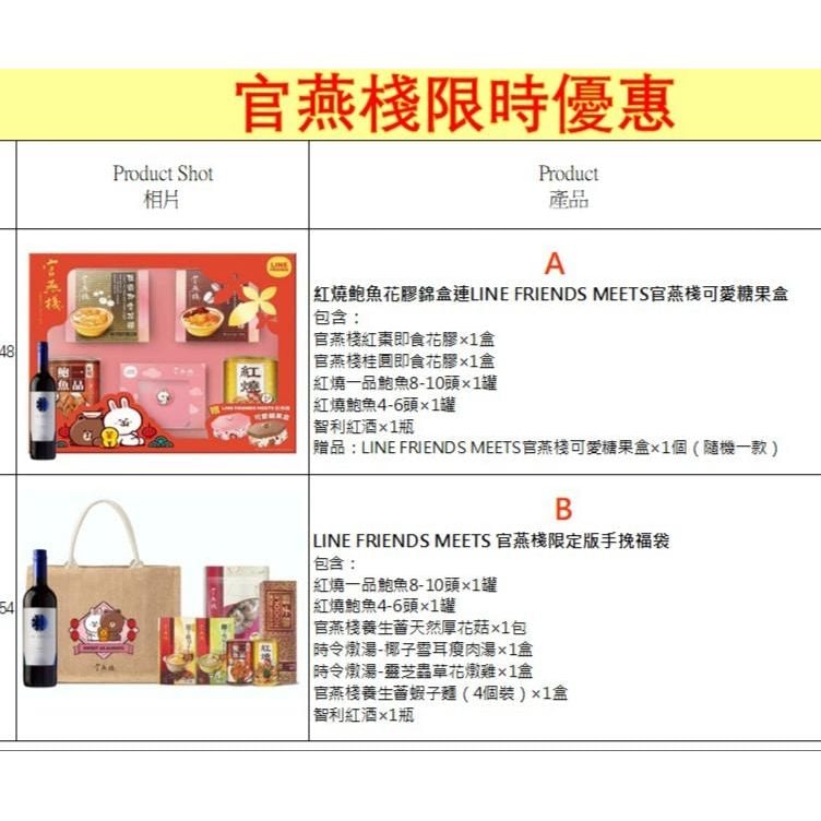 🐰新年禮盒最後召集🐰 售完即止‼️官燕棧x Line Friends 迎春接福新春禮盒福袋 ⚡️限時優惠 ⚡️(約1月中到貨) 禮盒🅰️ ❌原價$368❌ *限時優惠$298* 禮盒🅱️ ❌原價$388❌ *限時優惠$318*