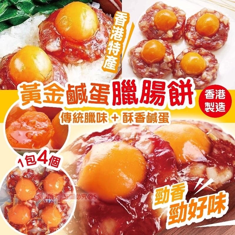 🇭🇰香港特產黃金鹹蛋臘腸餅 1包4個 (160G,+- 5%) 【👍🏻鹹蛋皇同臘腸絕配💕】 #本地老師傅手工製作🉐 將金黃漏唒油嘅鹹蛋🈵加放喺剛剛焙好嘅臘腸肉上🌸個味係勁夾👍 而且天然生曬臘腸💥等足一年呀😩 採用上等靚㊙️猪肉配上㊙️上等靚鹹蛋;真係諗起都想食🤤 【未試過就買一包試試】 呢個黃金鹹蛋臘腸餅因為無左腸衣,個蛋皇香味落唒個腸到😍 上年已經火速售罄💥 臘味採用古法秘方🌸香港🇭🇰傳統臘味風味 將臘腸做成肉餅方便蒸,再加上酥香鹹蛋,絕配🉐🉐 💁🏻♂️食用方法🥢 1️⃣黃金臘腸餅用滾水蒸15分鐘即可。 2️⃣煲飯時,開始出煙,放落準備熟既米入面,D臘腸油滲入米,勁香👍 規格:1包4個(岩岩好一家👨👩👧👦食😋) 產地:香港製造 原料:豬肉、白砂糖、食用鹽、蒸餾酒、蛋黃、味精、食品添加劑 (亞硝酸鈉) 儲存:請放於陰涼千燥處,開封後存放於冰箱冷藏更佳 最佳儲蓄方式:真空包裝下, 存入雪櫃,0-5°C可儲存180天, 室溫25°C以下90天
