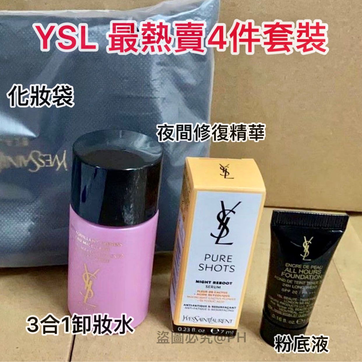 💟突發供應商現貨💟 售完即止🍃YSL 聖羅蘭 小樣4件套 (專櫃貨) (約4月底到港) 套裝帶去旅行,方便又好用❤️ 1️⃣名模肌密3合1機能卸妝水50ml 2️⃣夜間修復精華7ml 3️⃣恆顏無暇粉底液SPF20 5ml 4️⃣化妝包 Exp:2024年5月后 以實物為準 ===========⚠️ 聲明 ⚠️============= 所有帖文內容只作分享及參考用途。為免混淆視聽,所有商標或版權均屬有關商品品牌商標的持有人,敬請留意。