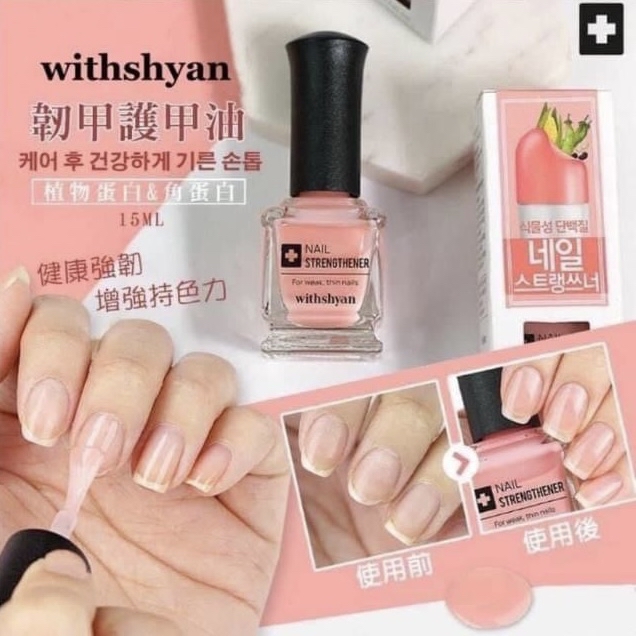 預訂🇰🇷韓國WITHSHYAN 草莓牛奶韌甲護甲油15ml (約10-21個工作天到港) 經常做光療、抛光、塗指甲油的人時間耐了指甲容易斷裂,變得又薄又軟還有可能细菌感染‼️ 這款護甲油含有大豆萃取植物蛋白、完整鎖住水分 提升指甲韌性、減少指甲斷裂 角蛋白針對乾燥泛白/分層/斷裂的指甲提供修護~降低斷裂受損狀況~堅找定期使用可以使指甲更加健康堅硬👍 ⭕️可代替底油使用,擦指甲油前先擦一層即可。 (預防指甲油色素殘留甲面) ⭕️不需厚搽薄1~2層即可,一周後再用卸甲水擦掉。 (建議使用無油卸甲水) ==⚠️ 聲明 ⚠️== 本貨品為平行進口正貨 所有帖文內容只作分享及參考用途。為免混淆視聽,所有商標或版權均屬有關商品品牌商標的持有人,敬請留意 🌟空運/海運可能因各種不明因素影響而延誤到港,如不能接受者請勿下單🙏🏻 🌟由於運輸問題,未能保證外盒能完好無缺,並不影響貨品使用,一律不接受為退款理由。 📌訂單確認後不退款/缺貨除外。 📌請考慮清楚才留言下單,不接急單、不能棄單❌。 📌如遇貨品缺貨,小店會將已付款金額全數退回,但不會作另行賠償,敬請留意。 📌本店屬代購角色,所有有關貨品之責任,例如品質、真偽等,本店將不會作出任何承擔或法律責任,如不能接受者請勿下單。 📌貨品由供應商倉抵達本店後如有壞貨/換貨/退款退貨需要本店交涉,該貨品之來回運費需由客人承擔,如不能接受者請勿下單。 📌敬請顧客閱讀以上聲明,本店將會默認各位顧客同意以上內容,多謝選購😊