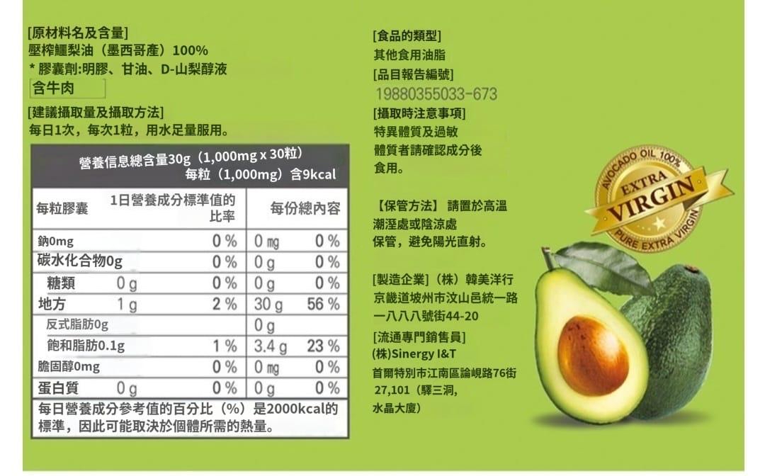 預訂 韓國🇰🇷超燃纖美牛油果酷梨油膠囊 1盒30粒 (約2星期到港)