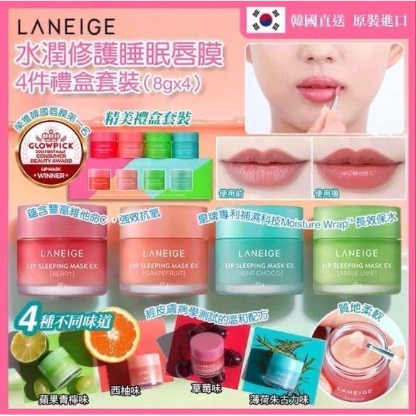 預訂 韓國🇰🇷Laneige 皇牌唇膜四件套裝😍8g*4(甜莓/西柚/薄荷/蘋果青檸) (約10-21個工作天到港)