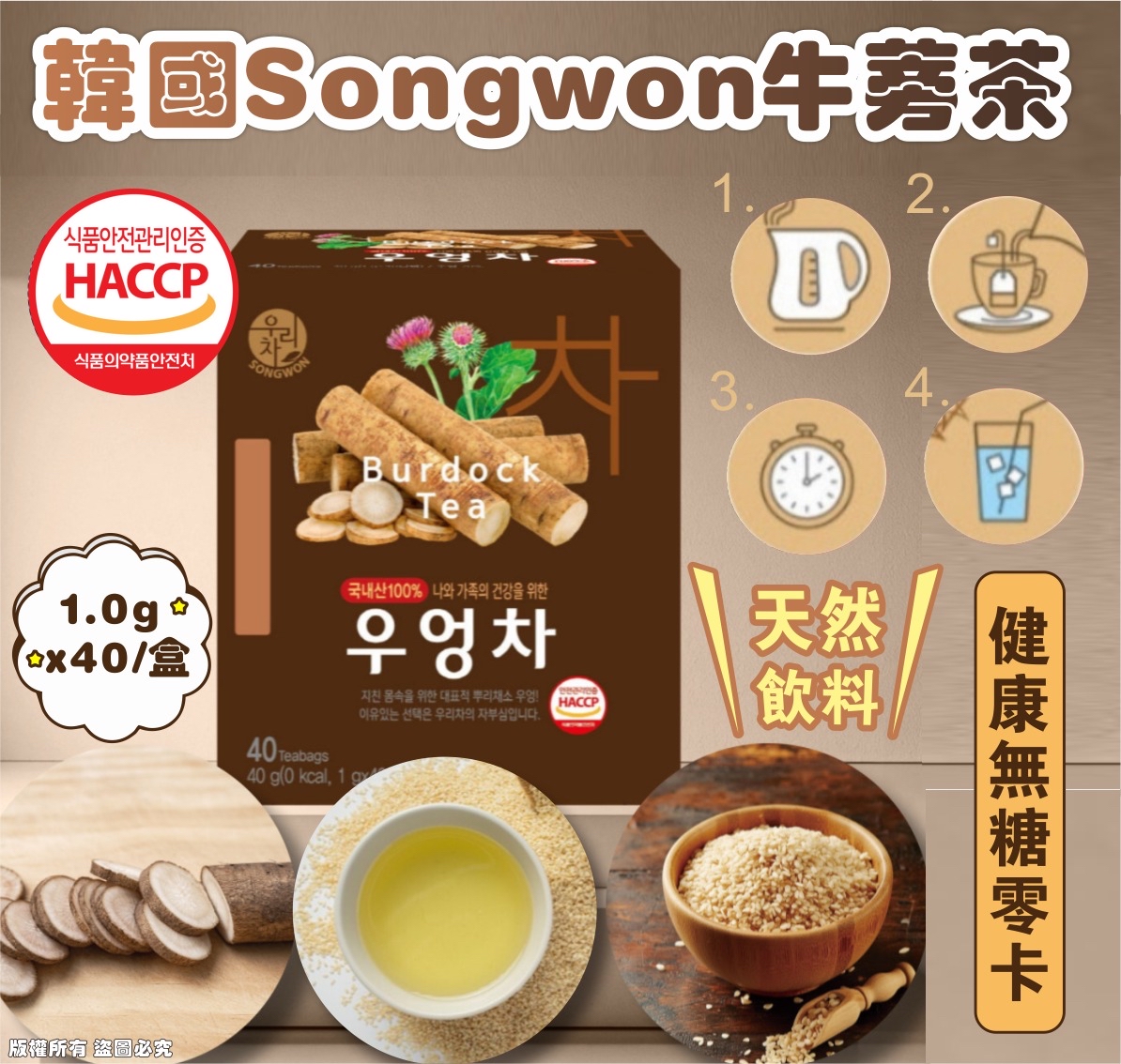 🇰🇷韓國Songwon 牛蒡茶1.0g×40t/盒(1套2盒)約9月中到港