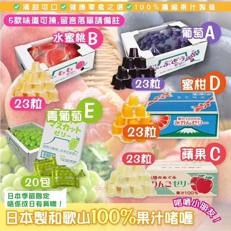 *今年仲平過上年呀🤩日本期間限定<<一年開一次團>>🇯🇵又番黎啦* 🇯🇵日本和歌山100%果汁啫喱 #日本和歌山100%果汁啫喱🍎 #一家大細都好啱嘅低卡零食👍🏻 年年爆單😍小朋友食極都唔厭,成日問幾時有,開團一齊訂啦😍 B.水蜜桃🍑 C.蘋果🍎 D.蜜柑🍊 E.麝香葡萄(青) 平時出街買D jelly成日都味道好假,好甜🥺同埋色素好多,而且好甜啲味道都好假,識食一定食呢款日本和歌山100%果汁啫喱💁🏻♀️ ✅清甜可口✅健康零食之選✅100%濃縮果汁製造 🉐淡淡果香而不膩😋唔太甜、唔笠口,食完唔使狂飲水❗🉐啱哂小朋友👦🏻👧🏻,健康零食之選❗🉐用來開Party 派比小朋友👦🏻👧🏻超正 呢款日本和歌山出產嘅啫喱,真係好似成盒生果咁💁🏻♀️一盒有成23粒,係由100%濃縮果汁製成💯味道清新,果味濃郁但唔會太甜☺️🉐小朋友做零食或者開party都係最佳嘅選擇‼️日本季節限定唔係成日有貨㗎,入返幾盒放喺屋企同小朋友做零食慢慢嘆🤩 💡小編推薦食法: 可以擺係雪櫃度雪藏,冰冰涼涼嘅口感超級正😋! 規格:1盒有23粒 / E款有20包 產地:日本 最佳食用限期 (Best Before):自製造日起約180天 保存方法:需置於陰涼處,無需雪藏 每箱數量:12 ⚠️ 聲明 ⚠️ 1. 本貨品為平行進口正貨。 2. 以上帖文內容及外盒包裝只供參考用途,商品原廠有更換新包裝權利,一切以實物為準。 3. 本公司並沒持有任何品牌之版權,所有商標或版權均屬有關商品品牌商標的持有人,圖片及資料轉載只作分享用途,敬請留意。 4. 貨品在運輸途中導致產品包裝外盒有任何損毀凹陷,但不影響其產品本身食用/使用,或有機會不預設外盒出貨,本司不會作任何更換或退款,介意慎購!