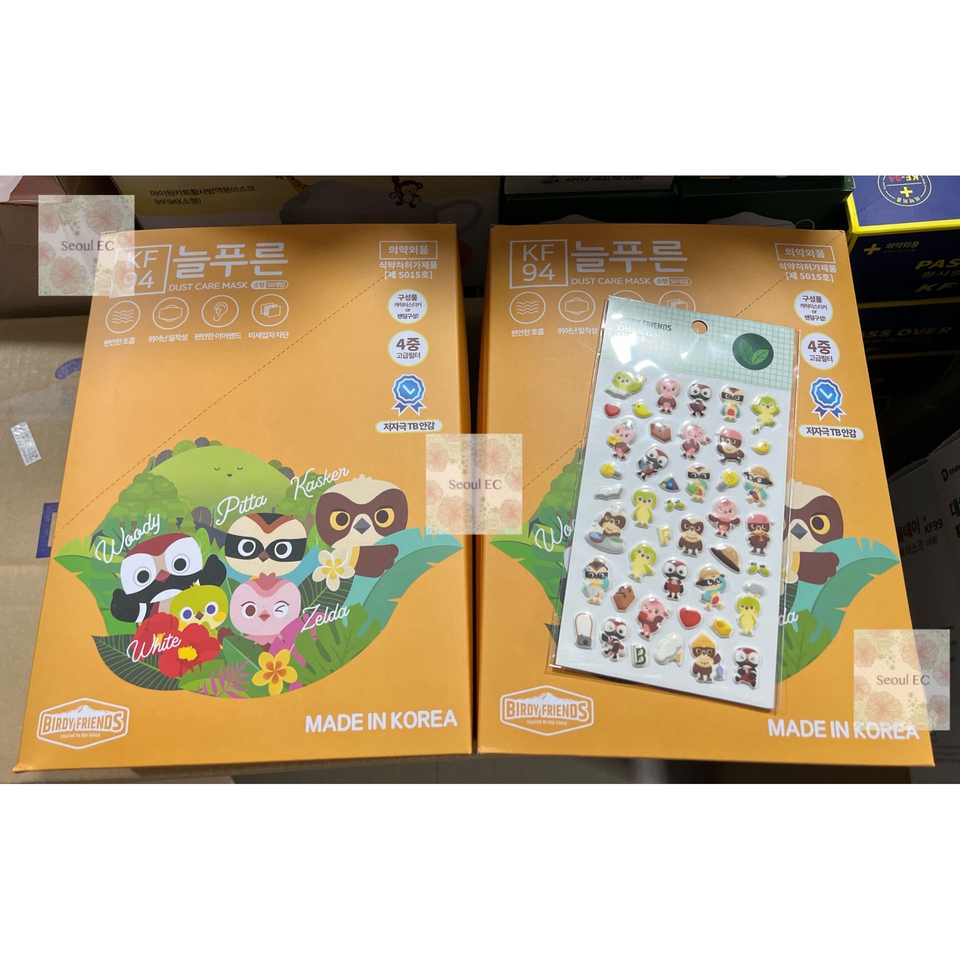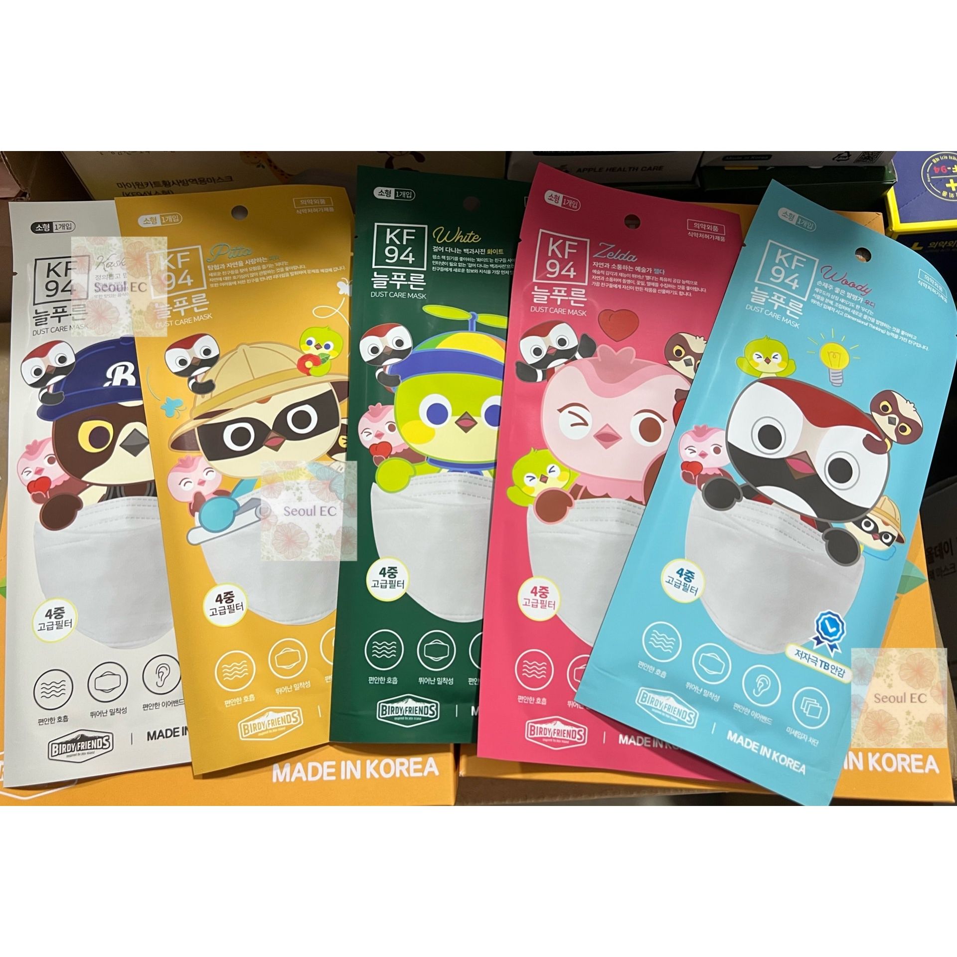 *為開學做準備* 🇰🇷韓國製造 Dust Care四層KF94兒童口罩 50個 1盒50個,獨立包裝🤓🤓 *韓國Birdy Friends聯名,隨機5款包裝圖案,非常可愛~🤩🤩每盒附貼紙一張* 獨立包裝立體舒適😉 四層防護 長時間戴也舒適有鼻支架固定👃 具韓國安全認證阻隔病毒細菌😷 ✅有效濾除空氣中達94%的0.4㎛ 微細懸浮粒子 ✅阻隔飛沫、病毒、細菌傳播感染阻擋細小灰塵及微細懸浮物質 ✅保護呼吸系統免受污染物及傳染物質侵害 ✅立體鎖緊口罩,不會令眼鏡易起霧氣 ✅舒適環繞下巴設計,擴大呼吸空間,大大提升透氣度 ✅高防護力,透氣又舒服 KF94口罩是韓國生產制定的標準,根據韓國食品藥品管理局(MFDS)官網的數據,該標準下的口罩對於直徑0.4μm的顆粒物過濾率大於94% 換言之,KF94標準的口罩能夠過濾掉最少94%的直徑等於0.4μm的顆粒物 因此KF94口罩與KN95、N95等口罩類似,都是在一個防護等級下的口罩品類,可過濾一般傳染性病毒🏻🏻 :: 每盒50個,獨立包裝 :: 兒童款 - 白色 :: size約 180mm*65mm :: 韓國製造