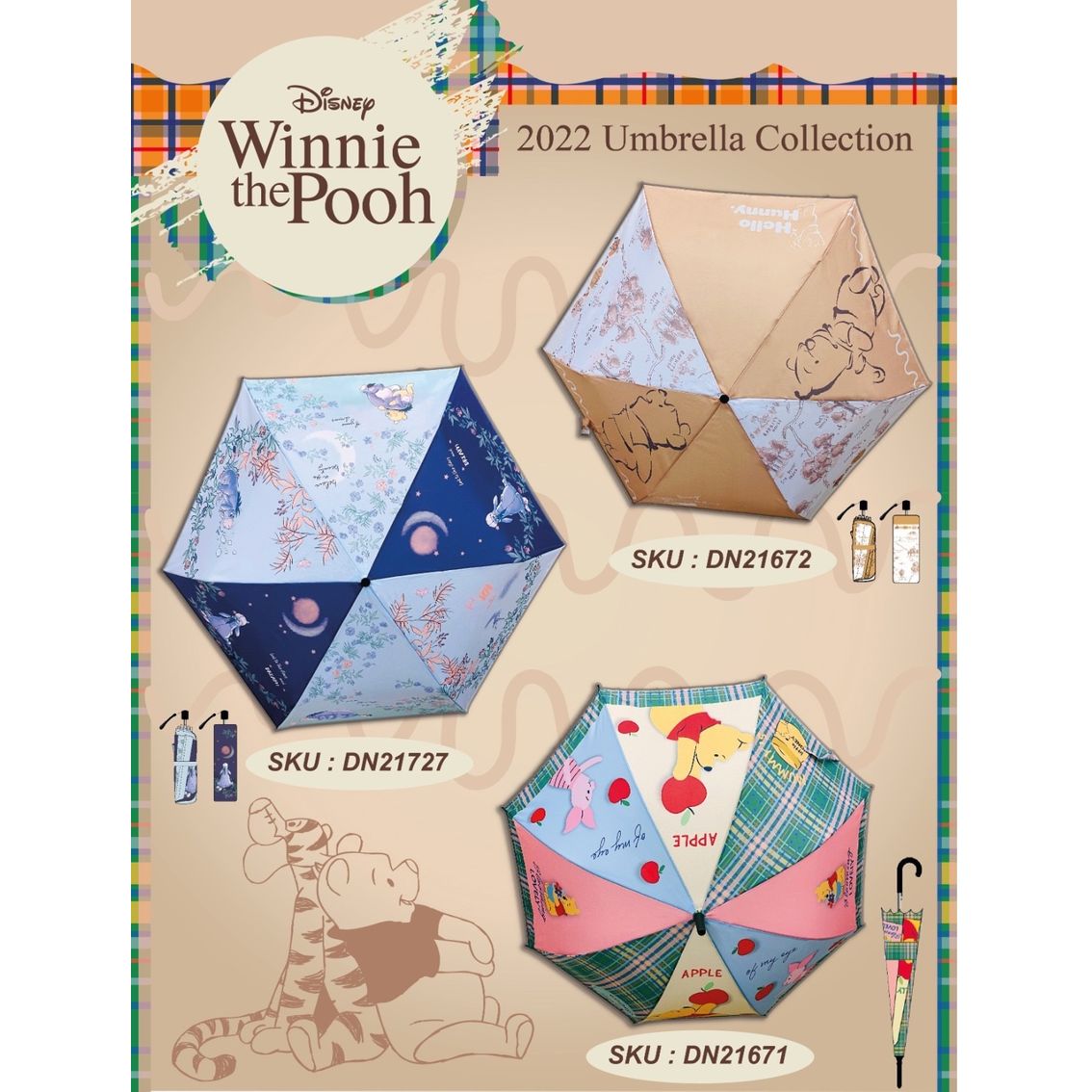 C. 伸縮短傘 - Winnie the Pooh (DN21671) 格紋