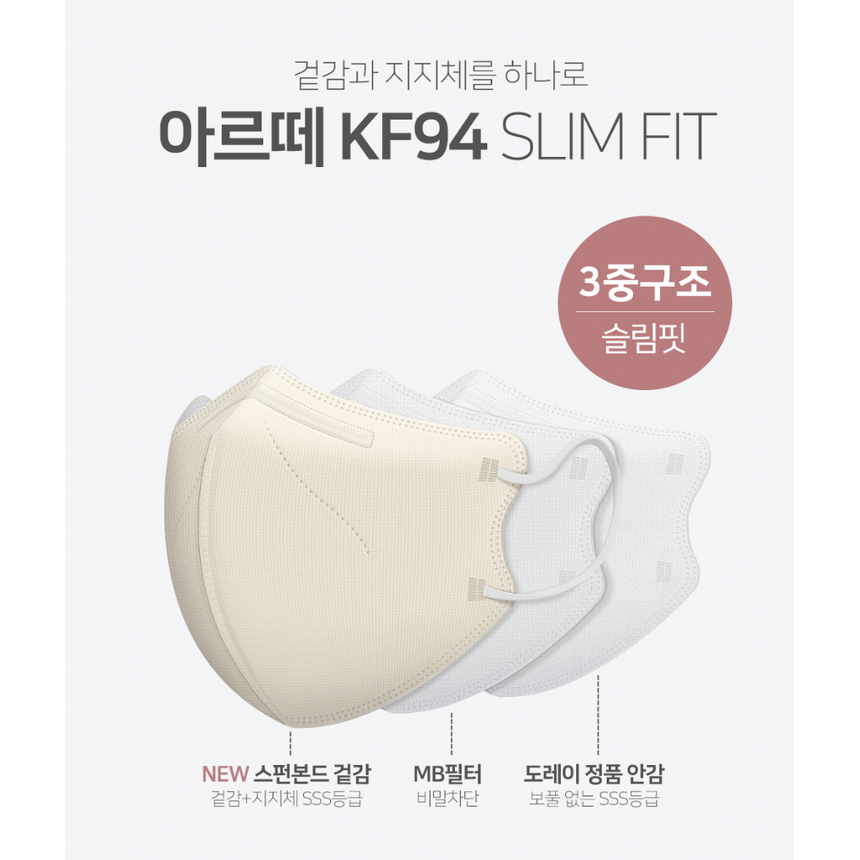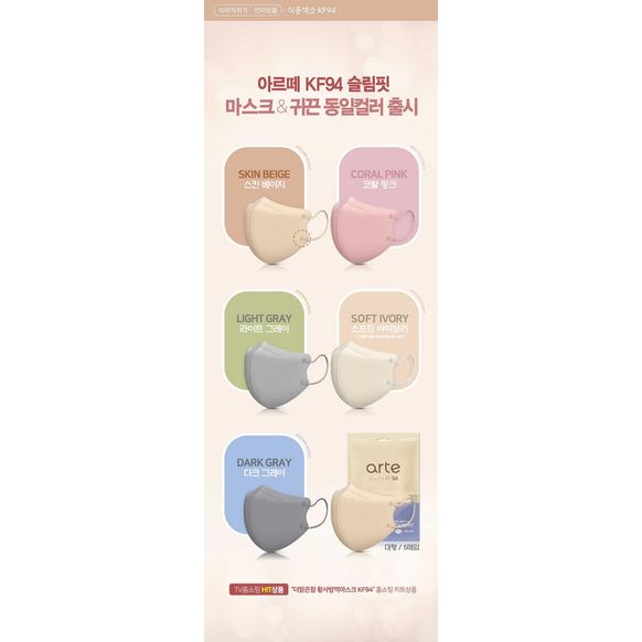 💎預訂💎🇰🇷韓國Arte ☀️夏天薄款 Slim Fit KF94 2D 口罩-每包5個(如售罄預訂約10-14個工作天)