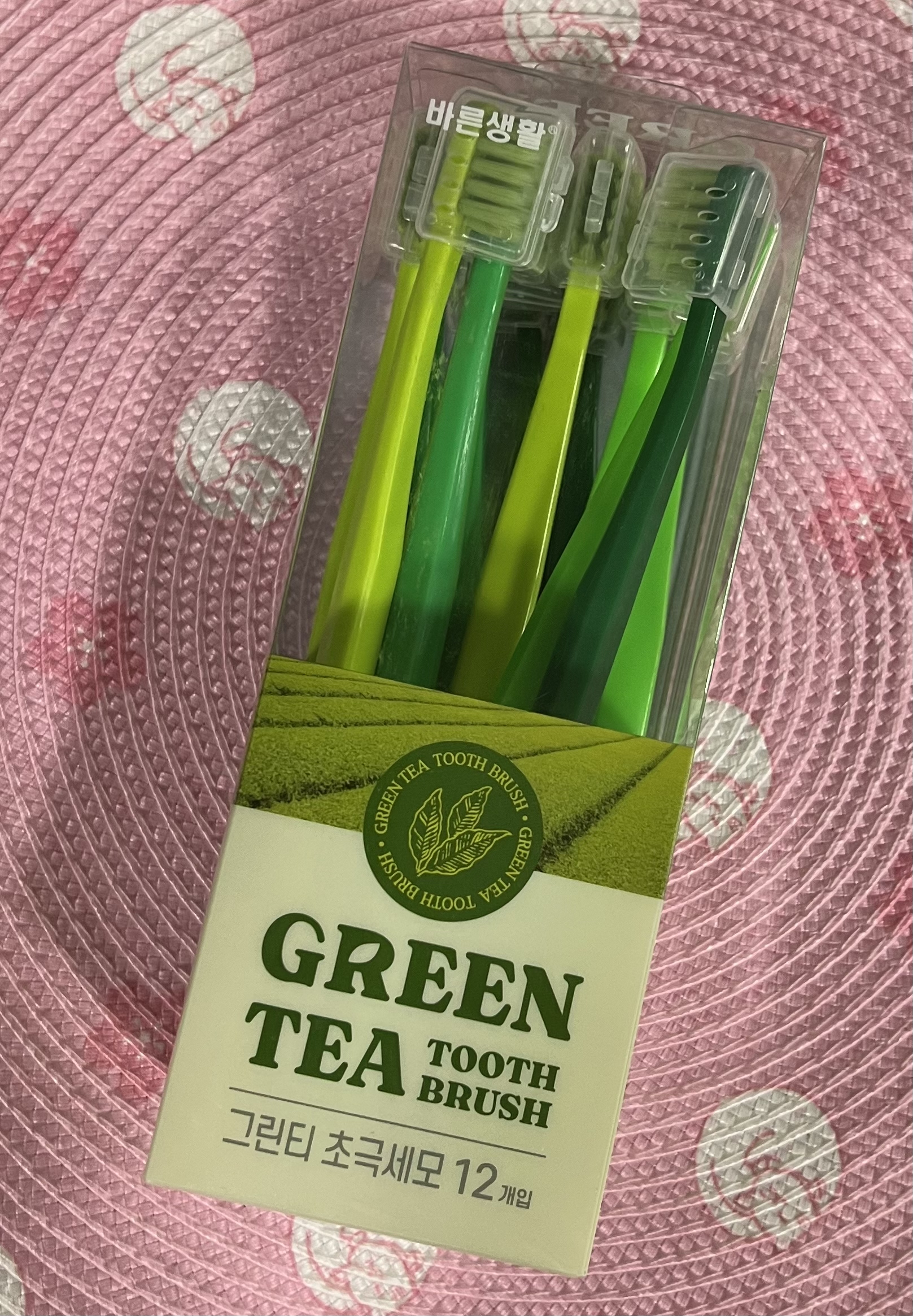 💟現貨💟🇰🇷韓國綠茶清新抗菌 極細刷毛牙刷附牙刷蓋 每套12支