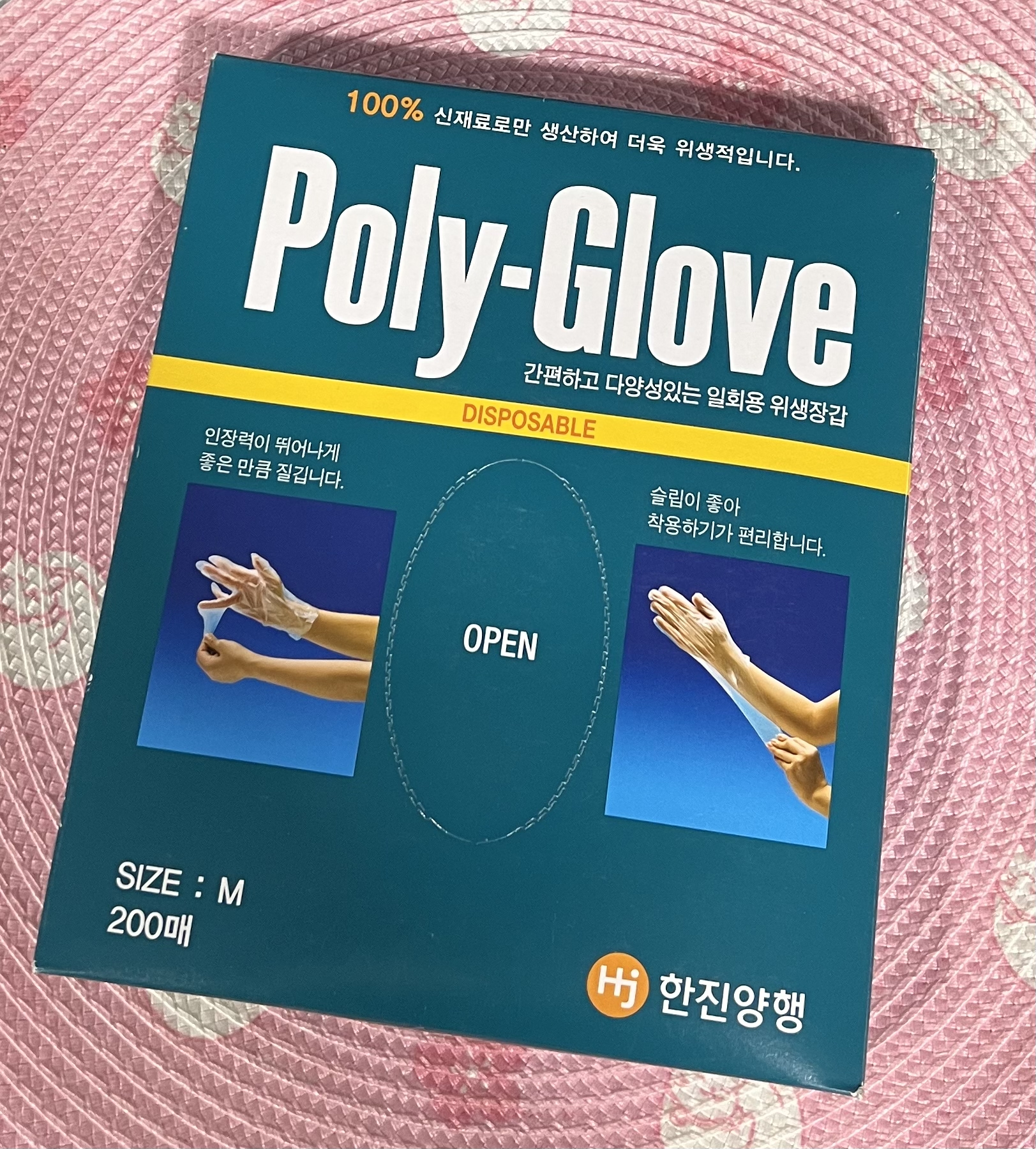 🇰🇷韓國 POLY-GLOVE 醫護級一次性環保衛生手套 (1盒200個) 手套破了🥺,感染到病菌直接傳到人體,是非常危險的‼️不如來用看看這款不怕拉扯衛生手套🙌,韓國多家醫院🏥、診所都指定使用這款拋棄式手套👍,看診、接觸病患、照顧新生兒等都可以使用👌。 醃泡菜🥬、做涼拌菜🥒、吃炸雞🐔、醃肉類🐖、染頭髮👧🏻、 做家務🧹,難免都會用到一次性的手套。但很多塑膠都很薄😅,輕輕一拉就破了,用了跟沒用一樣🥺。呢款韓國醫院🏥、診所都指定的拋棄式手套💫,不怕拉扯衛生手套超威的啦,怎麼拉扯都不易破👍,而且超強的延展性🌟。大家都知道醫院用的東西一定不能馬虎,很多時候都關乎於生命‼️ ✅這延展性超高,不會一拉就破✌️,點點壓花設計,可以防止手套與手黏TT更好穿戴🥰。 ✅醃菜、切菜、做家事、染髮都需要用到拋棄式的手套😉。 ✅無敏感物質❌ 📦產品內容: ➖材質:PE ➖厚度:0.02mm ➖耐溫:-50~80°C 📦規格:1盒200個(即100對)
