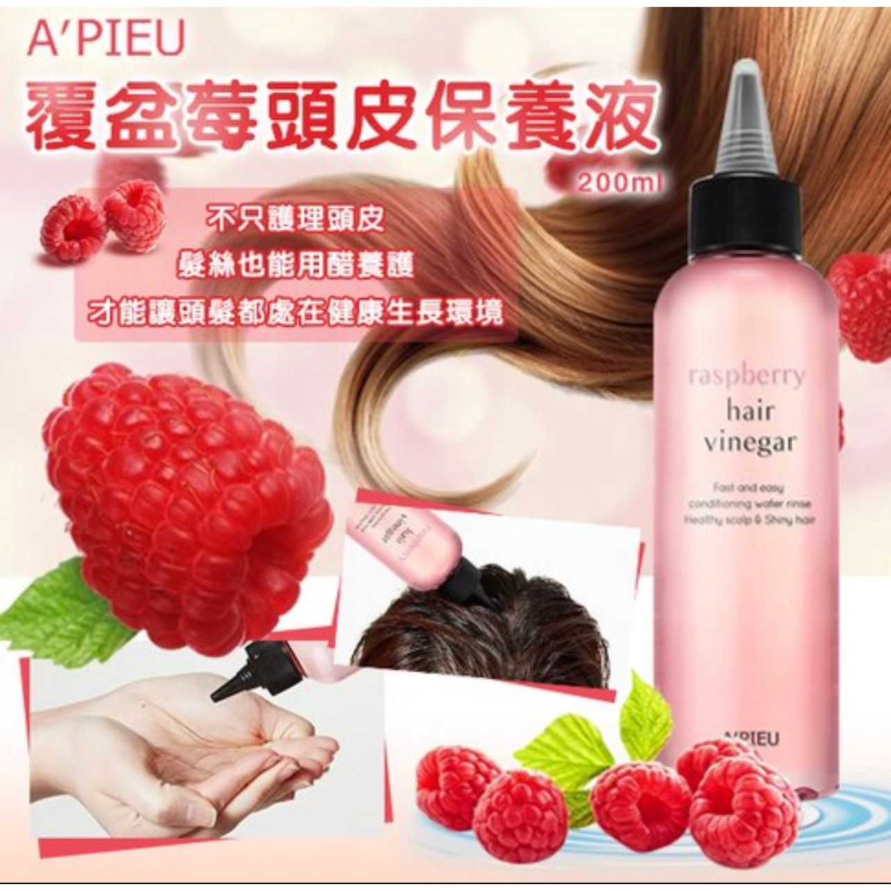 💟現貨💟🇰🇷韓國A'PIEU Raspberry Hair Vinegar 覆盤子莓果護髮頭皮保養液 200ml