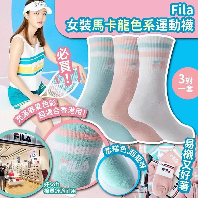 💟現貨💟Fila 女裝馬卡龍色系運動襪 (1組3對)