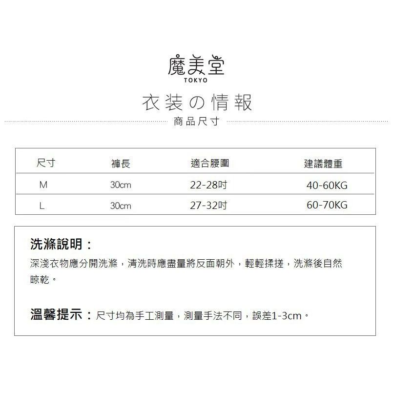 M size 22-28吋腰圍;建議約40-60kg人士適用;褲長30cm