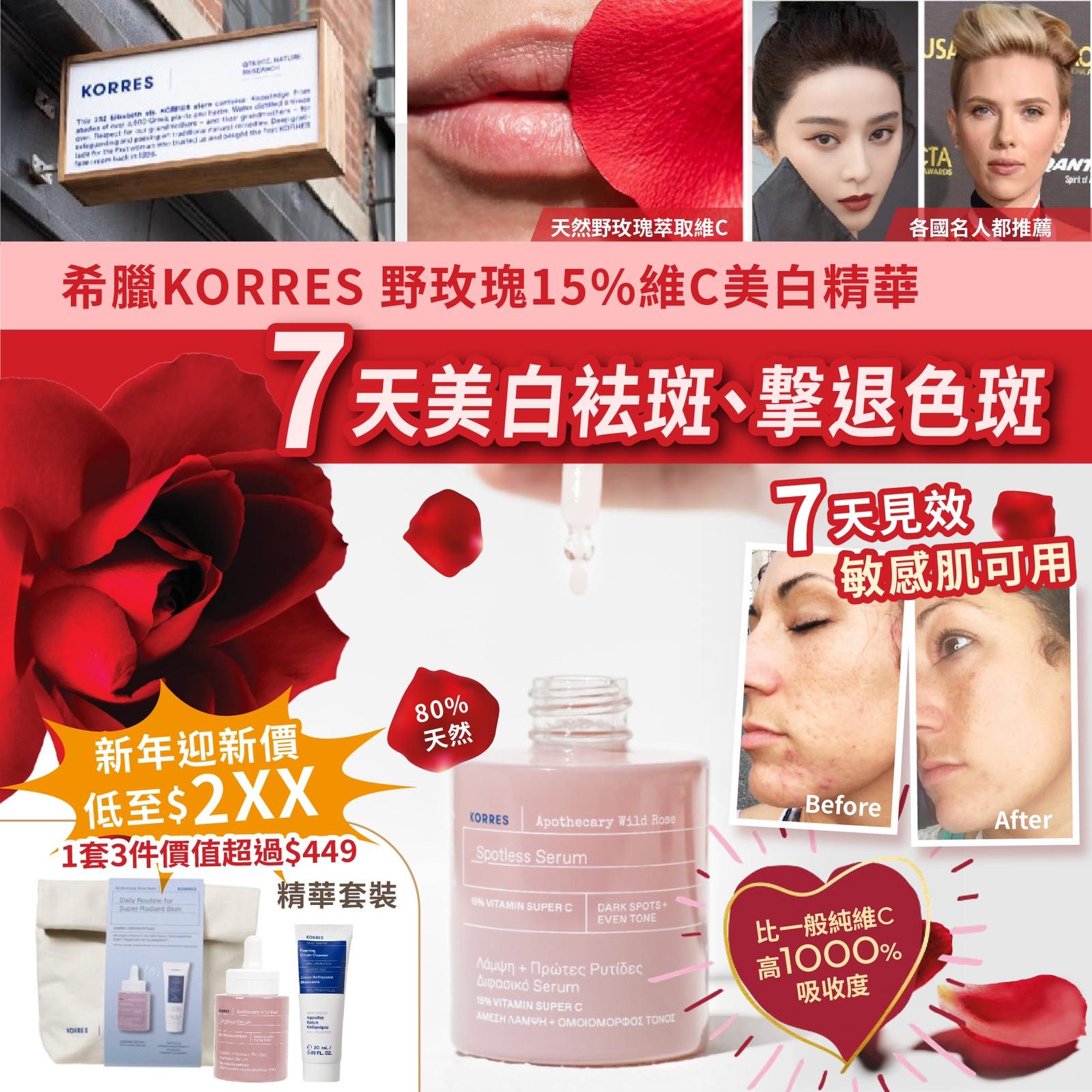 24/2截🇬🇷希臘 KORRES🌹野玫瑰15%維他命C美白祛斑精華套裝(約3月底到港)