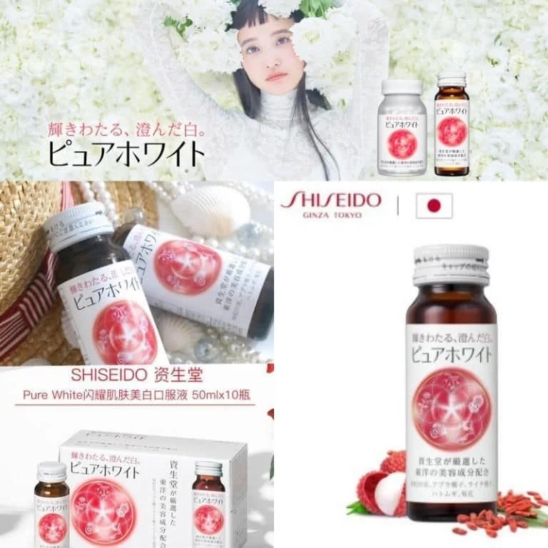 24/6截🇯🇵Shiseido 資生堂 美白 口服液 50ml X 10支裝 (約7月初到港) 【白到叫出來❣️美得令人羨慕的白裡透紅】😱😱😱 4星期將暗啞無光的黃面婆肌,變出白雪肌且帶紅潤氣色的,就是靠這款Shiseido - Pure White 美白口服液 1盒(50ml x 10瓶) ❣️ 💵HKD 168/每套10支裝 *Shiseido官方強調喝1支美白口服液,相當於喇28粒美白丸!美白效果非常非常驚人,吃了白了一個度真是不再發夢了🤤* 非常推介比女仕們飲,因為它除了加了很強的美白成份,還特別添加了1500mg的枸杞子精華。枸杞子的作用是美容常用的食品,連楊貴妃也吃過,可幫助女仕延緩衰老、美白養顏、養肝明目、補虛生精等。 除了枸杞子精華以外還添加了油棕油7.5mg富含VE、荔枝種子精華50mg保濕防曬、菊花精華5mg,增加皮膚的透明感、薏仁精華25mg,富含氨基酸和美白成分。嚴選古方的東洋美容成分來美白美容淡斑,特別還好適合女仕月經期間作補血聖品❤️❤️ Shiseido的品質很少人會懷疑的,吃美白產品我看重的除了白,還有透明感和血色感,真正白成紙可是臉色不紅潤還令人很害怕的,它裡面的枸杞含量相高, 有Sister說吃這個美白丸連經痛都治好了,所我不得不試它家的口服液。 說實話口感挺好,像果汁🍹,冰過會更好喝。 . 4星期還你白皙水嫩皮膚⚠️⚠️ 有效: 📍抑制黑色素產生 📍促進皮膚新陳代謝 📍加快淡斑 📍均勻膚色 📍從由內而外美白、透明 . ✦使用方法︰ 一天1瓶,建議冰箱冷藏后服用更佳 日本製🇯🇵 ❤️新貨到港最新食用期