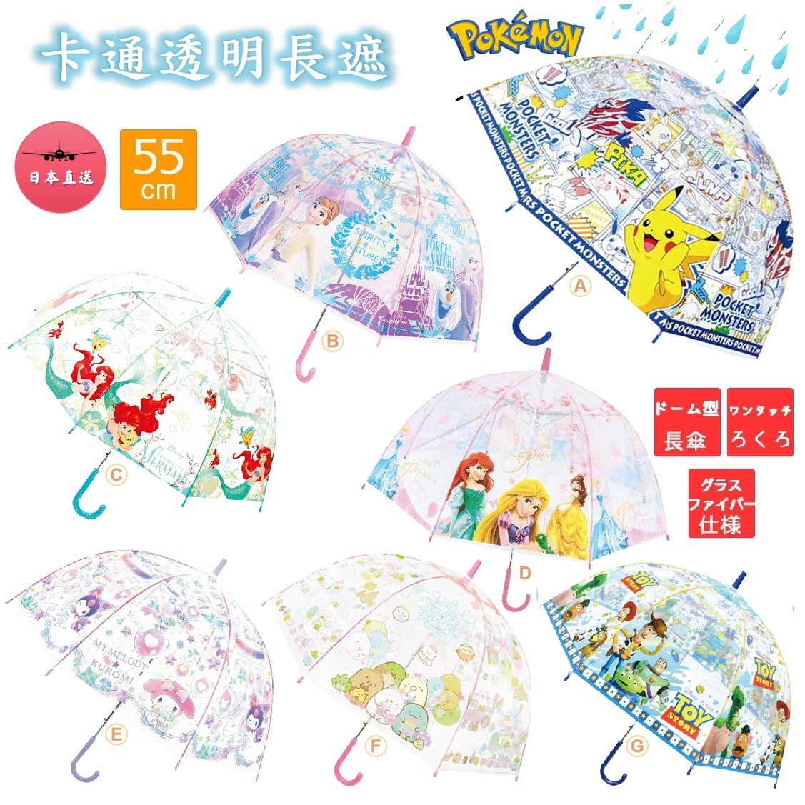 25/6截🇯🇵日本卡通透明長遮 55cm (約8月初到港) ☔打風落雨季節嘅必備品⛈️ 大人細路都最鍾意呢款圓頂透明雨遮🤩😍 唔使驚擋住視線發生危險🚕 🧡使用玻璃纖維骨做傘骨 ✔️比鋼架更輕 ✔️攜帶更方便 ✔️抗風性強、有彈性、不易折斷 ✔️適合大人或中大童使用 🌟多款受歡迎角色可選擇🌟 A. Pokemon B. Frozen C. Ariel D. Princess E. My Melody & Kuromi F. 角落生物 G. Toy Story 🔺尺寸🔻 ▪️由遮最頂部到邊緣: 約 55cm ▪️直径: 約78cm ▪️全長: 約74cm 🔹材料 布料:POE,羅紋:玻璃纖維,手柄:塑料 產地 : 中國