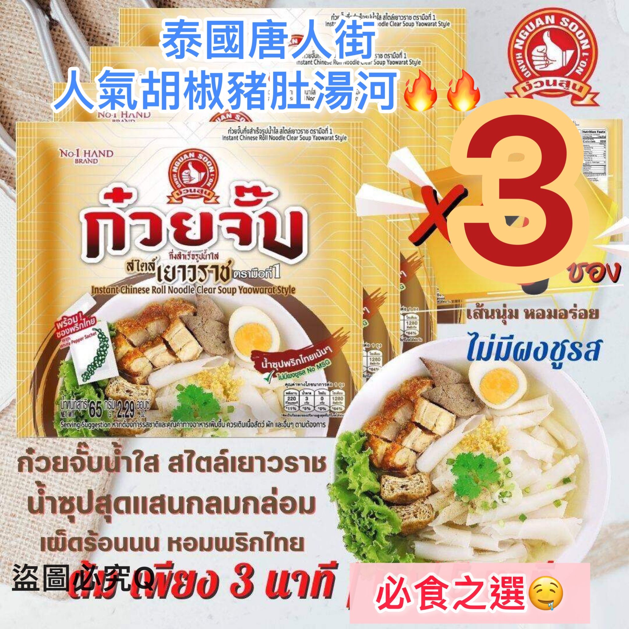 27/3截 泰國🇹🇭唐人街人氣胡椒豬肚湯河 - Nay Lek Uan😍(1套3包) (約5月初到港) #人間美食🤤🤤 #醬汁自家調製 #味道濃郁 現在唔洗排隊都食到泰國最出名的胡椒豬肚湯河啦💓💓 這個攤檔已經經營多年,所售的是泰式胡椒豬肚湯河。所謂胡椒豬肚湯河,其實就是棵汁。🥰 棵汁其實就是將一些三角形的粉加上具有濃烈胡椒味的湯,再加上豬的不同部分,例如豬肉、內臟、豬耳、豬舌等放成一碗,這就是人間美食。🤭🤭😌😌 大家喜歡吃這種卷起來的卷粉嗎?😌 招牌湯頭好濃好香🤤喺屋企都可以整到來食,唔洗排隊有得食🤭🤭 方法: ✔️先把湯醬包加適量熱水及餸料放入煲內煮滾 ✔️加入附送的粉煮約1分鐘,變淋即OK 食用期限: 約1年 以實物為準 ===========⚠️ 聲明 ⚠️============= 所有帖文內容只作分享及參考用途。為免混淆視聽,所有商標或版權均屬有關商品品牌商標的持有人,敬請留意。