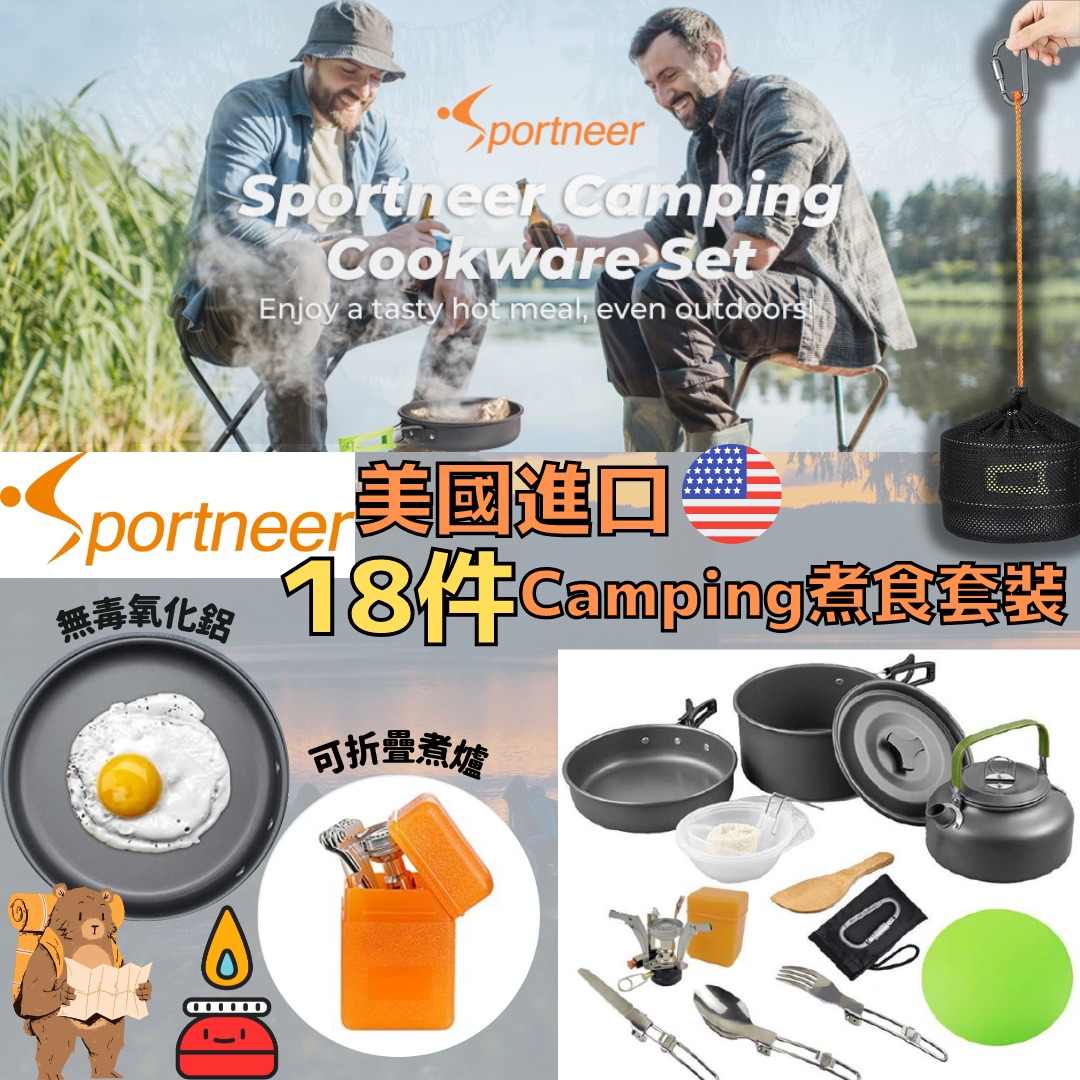 27/5截🇺🇸美國進口 Sportneer 18件Camping煮食套裝 (約8月底到港)