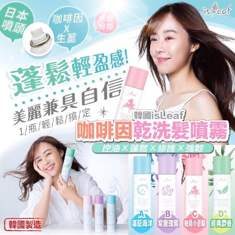 28/9截🇰🇷韓國isLeaf咖啡因乾洗髮噴霧150ml (約11月中到港) *4大功效✅控油✅篷鬆✅修護✅強韌* 這枝真的超好用 ! 每次都叫韓國的朋友幫我買! ✔添加些許薄荷 使頭皮舒服涼感 ✔不需要一滴水,輕鬆甩掉油膩髮根,打造自信造型 ✔日本專利噴頭設計,高壓氣密鋼瓶氣體不易外漏 ✔運用天然大米澱粉&添加4種營養成分,吸附油脂/活絡頭皮/輕盈滑順 ✔4種迷人香氣依造喜好選擇,告別頭皮油臭味 ✔出差/運動後/聚會/旅遊/產後坐月子/生理期~不方便洗頭的最佳選擇 ✔添加 " 咖啡因X生薑" 的乾洗髮噴霧~產後坐月子必用! ✔具有蓬鬆效果的造型噴霧,造型同時也能養護秀髮 ✔春夏天沒有它真的不行~ ✔可以幫助頭皮達到🔸控油X蓬鬆X修護X強韌🔸 💎通過SGS認證 可以安心使用 💎四種療癒香味 味道任選 A.湛藍海洋 B.紫愛瑰蜜 C.柚見小蒼蘭 D.經典麝香 #韓國isLeaf #咖啡因乾洗髮噴霧#拯救你的夏日油膩髮 #6秒打造蓬鬆 #自信完美再現 使用/保存期:2023/04 或以後 以實物為準