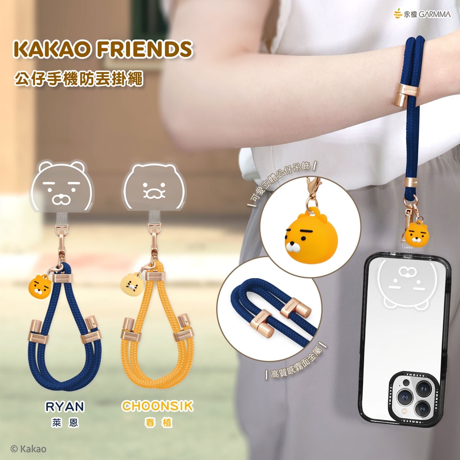 30/3截 台灣GARMMA x KAKAO FRIENDS 公仔吊飾限定手機長掛繩 /短掛繩🟡 (約4月底到港)