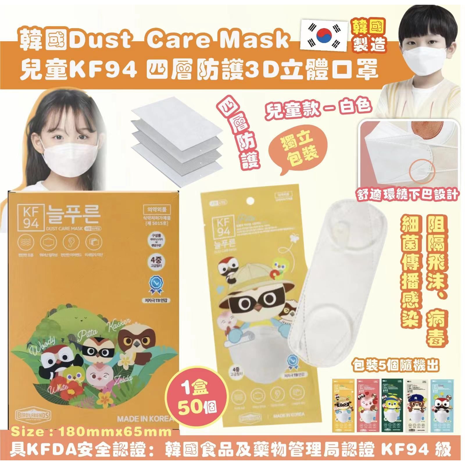 💎現貨💎🇰🇷韓國製造 Dust Care四層KF94兒童口罩 50個 包裝隨機圖案